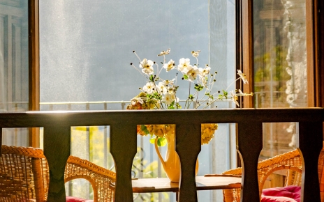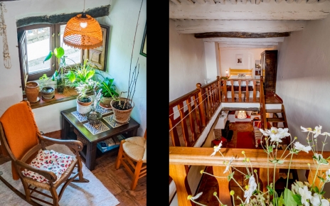 Una escalera de madera conduce hasta la planta de arriba, en forma de galería desde donde podemos ver toda la planta de abajo. El piso superior contiene la cama doble y enfrente un pequeño espacio con amplia ventana, donde sentarse a charlar y contemplar las vistas. Desde aquí, no sólo se puede permite ver la magnitud del valle, sino las lejanas montañas de la cordillera del Rif, en Marruecos en días de claridad atmosférica.