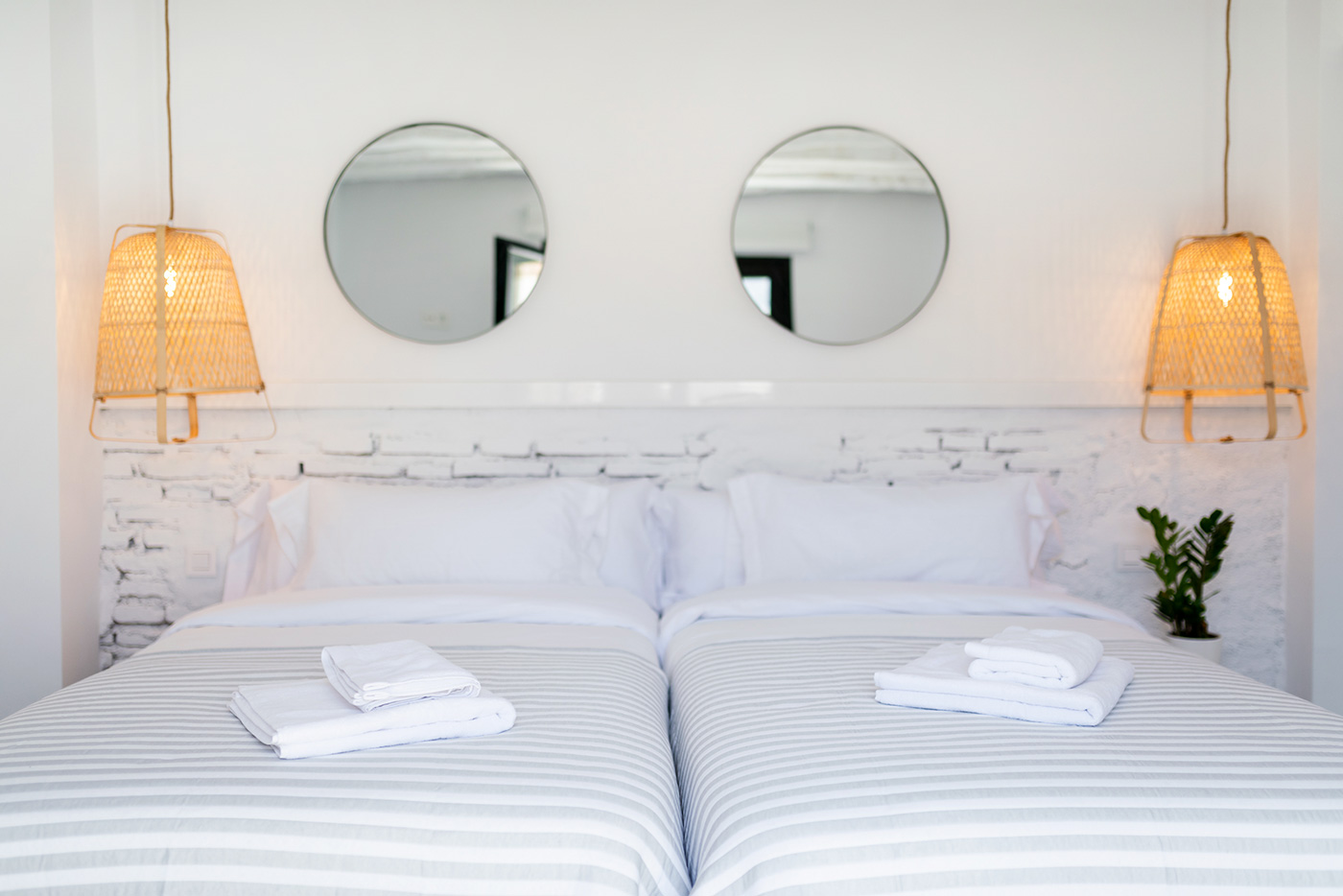 Dormitorio 1 "El almendro desnudo": habitación con dos camas (tamaño de las camas: 1,05 x 2,00 metros) y baño en suite (ducha); Dormitorio 2 "La higuera loca": habitación con dos camas (tamaño de las camas: 1,05 x 2,00 metros), sofá cama, dos balcones y baño en suite (ducha); Dormitorio 3 "El naranjo dormido": habitación con dos camas (tamaño de las camas: 1,05 x 2,00 metros), balcón y baño en suite (ducha); Dormitorio 4 "Aroma de limón": habitación con dos camas (tamaño de las camas: 1,05 x 2,00 metros), balcón y baño en suite (ducha); Dormitorio 5 "La chumbera": habitación con dos camas (tamaño de las camas: 1,05 x 2,00 metros), sofá cama y baño en suite (ducha).
