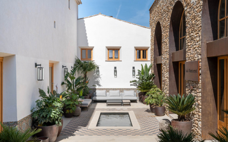 Hay una segunda piscina en un patio, que recuerda a las que se encuentran en un riad marroquí, rodeada de elegantes azulejos artesanos y plantas.
