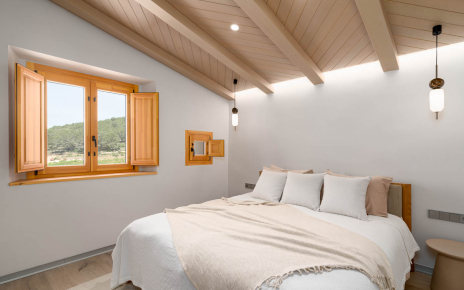 Nos encantó también el compromiso por la sostenibilidad y el respeto por el medio ambiente que se ha aplicado en esta rehabilitación, tan necesarios en nuestro preciado planeta. Aunque la casa está conectada a la red eléctrica, energéticamente cuenta con sus propios recursos que incluyen su propios pozos y de la electricidad que generan a través de paneles solares.