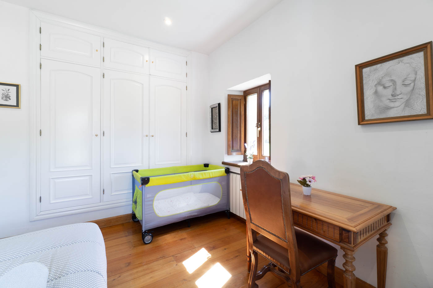 Hay un dormitorio en la planta baja que puede ser útil para alguien con movilidad reducida ya que el baño está equipado con barras de apoyo. La cocina es moderna, con un cuarto de servicio para lavar la ropa, los baños están solados de mármol y, en general, destaca una cuidada pulcritud en toda la vivienda.