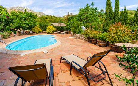 A few steps outside takes us to the fabulous, fenced, good sized swimming pool (pool terrace renovated with new surface in 2025)., which is sure to be a favourite playground for all the family. The pool bar has a fridge so we can enjoy our favourite refreshments whilst relaxing on one of the comfortable sun loungers surrounding the pool. You often enjoy the pleasant aroma emanating from the aromatic plants by the pool terrace, predominantly lavender and rosemary.